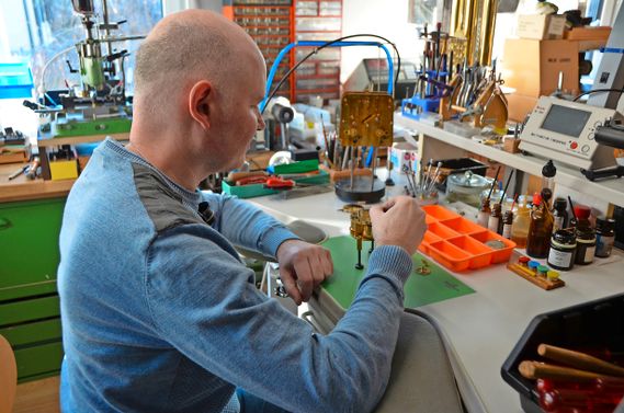 «Es ist meist besser, wenn man eine defekte Uhr gleich zum Fachmann bringt, als selber etwas auszuprobieren», weiss er aus Erfahrung. Seine Werkstatt ist indes für alle Fälle ausgerüstet und bringt so gut wie jeden Zeiger wieder auf Trab. Die meist benutzte Maschine für Reparaturen sei die Drehbank. Und, wie könnte es auch anders sein, denn das Tüftlerherz spürt man bei Mathias Schneider sehr schnell heraus, hat er seine benötigte Lehrenbohrmaschine gleich selber aus diversen Einzelteilen zusammengebaut. Zu entdecken gibt es indes im Laden nicht nur Uhren, sondern auch die kleinste mechanische Rechenmaschine der Welt – die Curta, erfunden vom Wiener Curt Herzstark (1902?1988). So schön die Erfindung ist, so unschön ist die Geschichte, wie Herzstark seine Idee umsetzen musste. Als Halbjude wird er in den 40er Jahren ins Konzentrationslager Buchenwald gebracht, wo er eigentlich mit seinem Leben schon abgeschlossen hat. Dann wird Herzstark aufgrund seiner früheren Arbeiten für die Wehrmacht in das angeschlossene Gustloff-Werk (eine feinmechanische Fabrik der SS) abkommandiert und darf abends und am Sonntag für seine neue, kleine Rechenmaschine zeichnen. Die soll dem «Führer» als Siegergeschenk überreicht werden. Nach der Zeit im KZ sucht Herzstark einen Produzenten für seine Curta und wird im Fürstentum Liechtenstein fündig. Und dass die Curta im Laden von Mathias Schneider steht, das hat seinen Grund, ist dieser doch heute Markenbesitzer und hat natürlich auch alle Ersatzteile für Reparaturen für das kleine Werk parat. Schneider hat aber nicht nur Marken übernommen und kann alles reparieren, er hat auch seine eigene Uhren-Kollektion entwickelt. Und, verrät er, momentan sei er wiederum an einer eigenen Erfindung, den Prototypen würde es bereits geben. Mehr dazu ist dem Mann mit den begabten Händen für die Uhren aber zu diesem Zeitpunkt nicht zu entlocken.